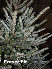 Fraser Fir is an exotic tree in Canada but has become extremely popular in recent years. Needles are flattened, dark-green with a medial groove on the upper side and two broad silvery-white bands on the lower surface. On lower branches, leaves are two-ranked (occurring in two opposite rows). On upper twigs, leaves tend to curl upward forming a more "U-shaped" appearance. The combination of form, needle retention, dark blue-green color and pleasant scent has led to Fraser fir being a most popular Christmas tree species. This species has a much longer growing cycle and will therefore be more expensive than some other species.